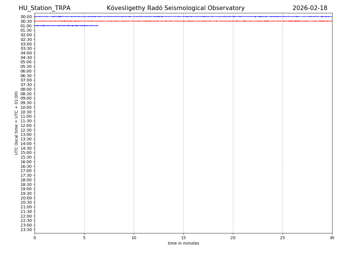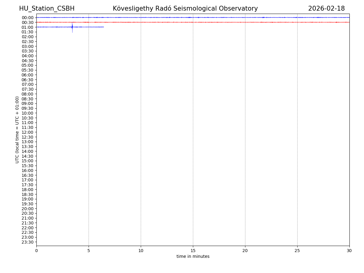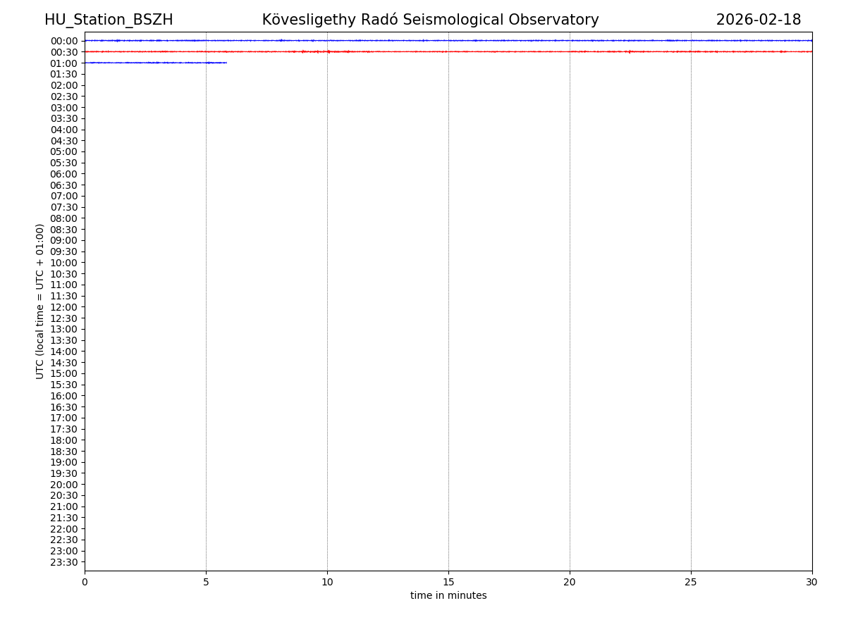 Click on an image below to access the live seismogram recorded by the selected Hungarian seismological station. Seismograms recorded on the previous ten days can also be retrieved by following the links below the images. (Time-scale is meant in universal time [UTC].)