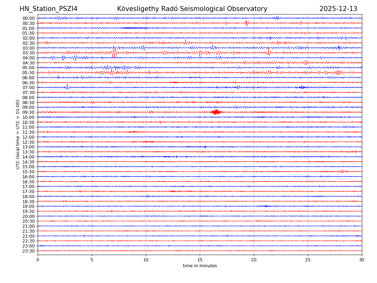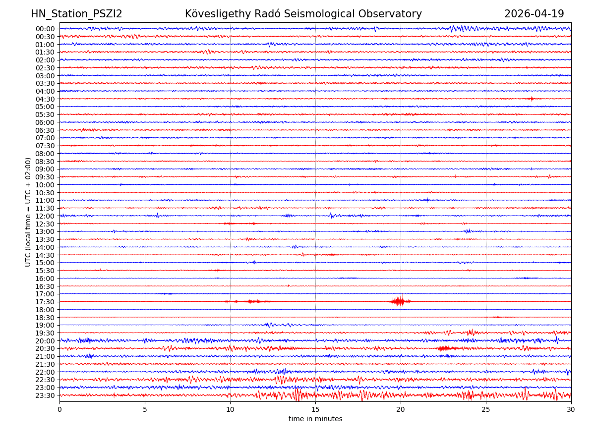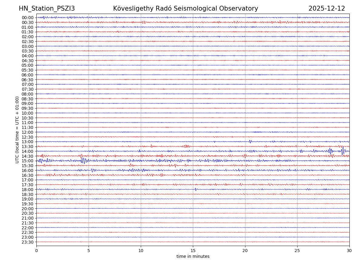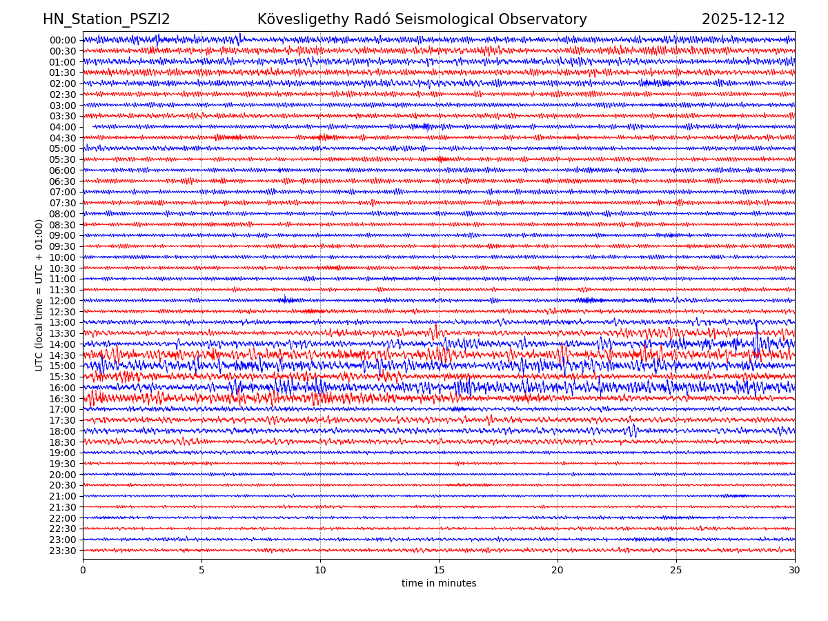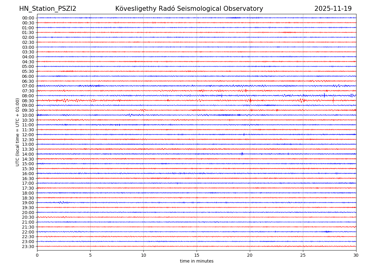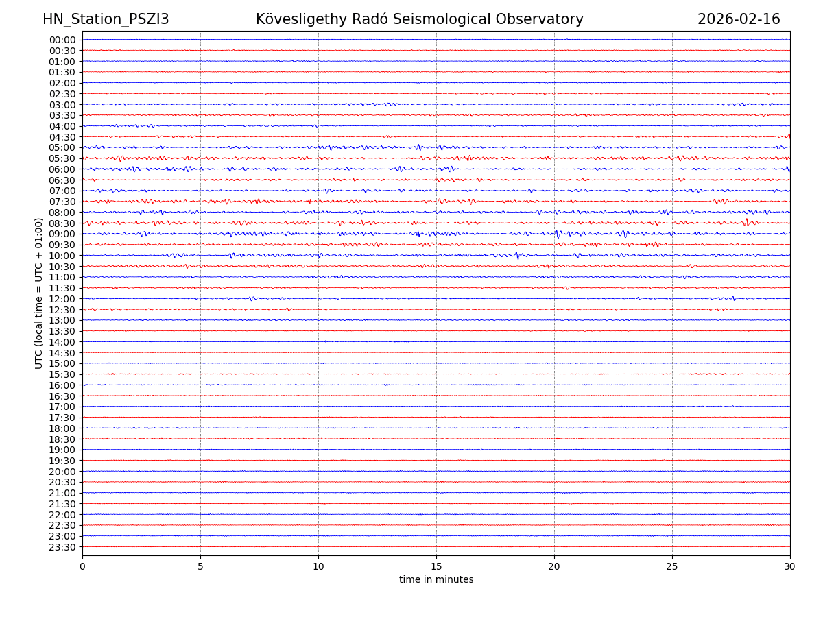 A kiválasztott képre kattintva megtekintheti a kérdéses magyarországi infrahang állomás által detektált élő regisztrátumot. Az előző tíz nap során rögzített infrahang regisztrátumok a képek alatt található linkeket követve jeleníthetők meg. (Az időskála világidőben [UTC] értendő, melyhez képest Magyarországon a helyi idő a téli időszámítás idején +1, nyári időszámítás esetén +2 óra.)