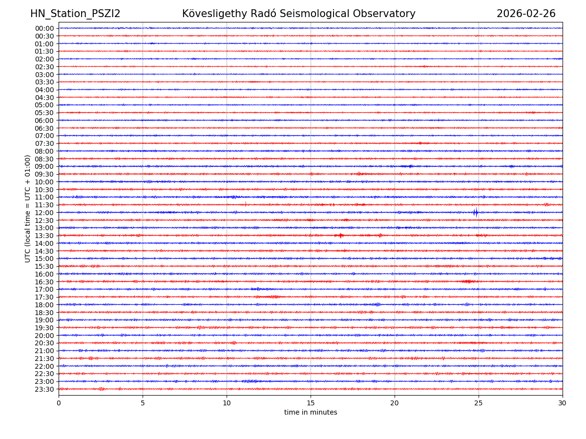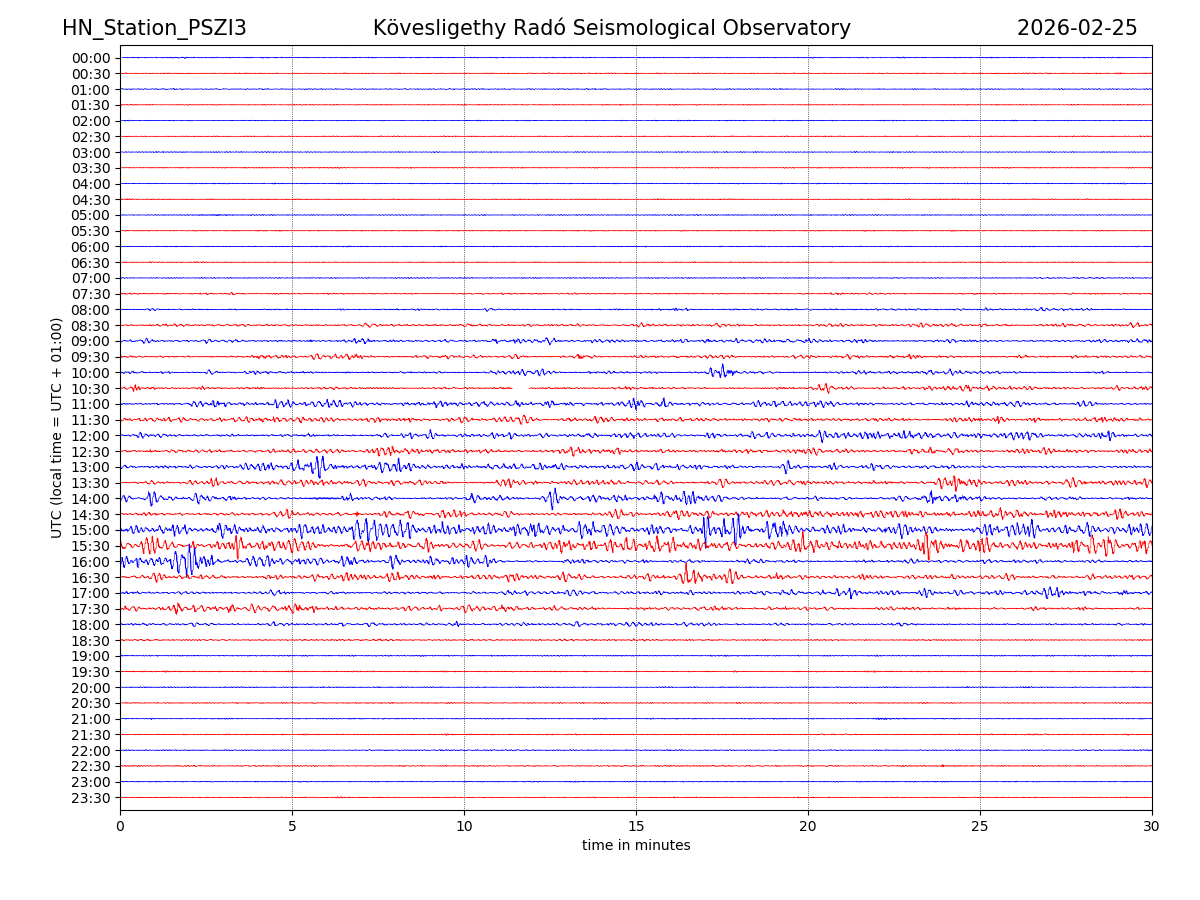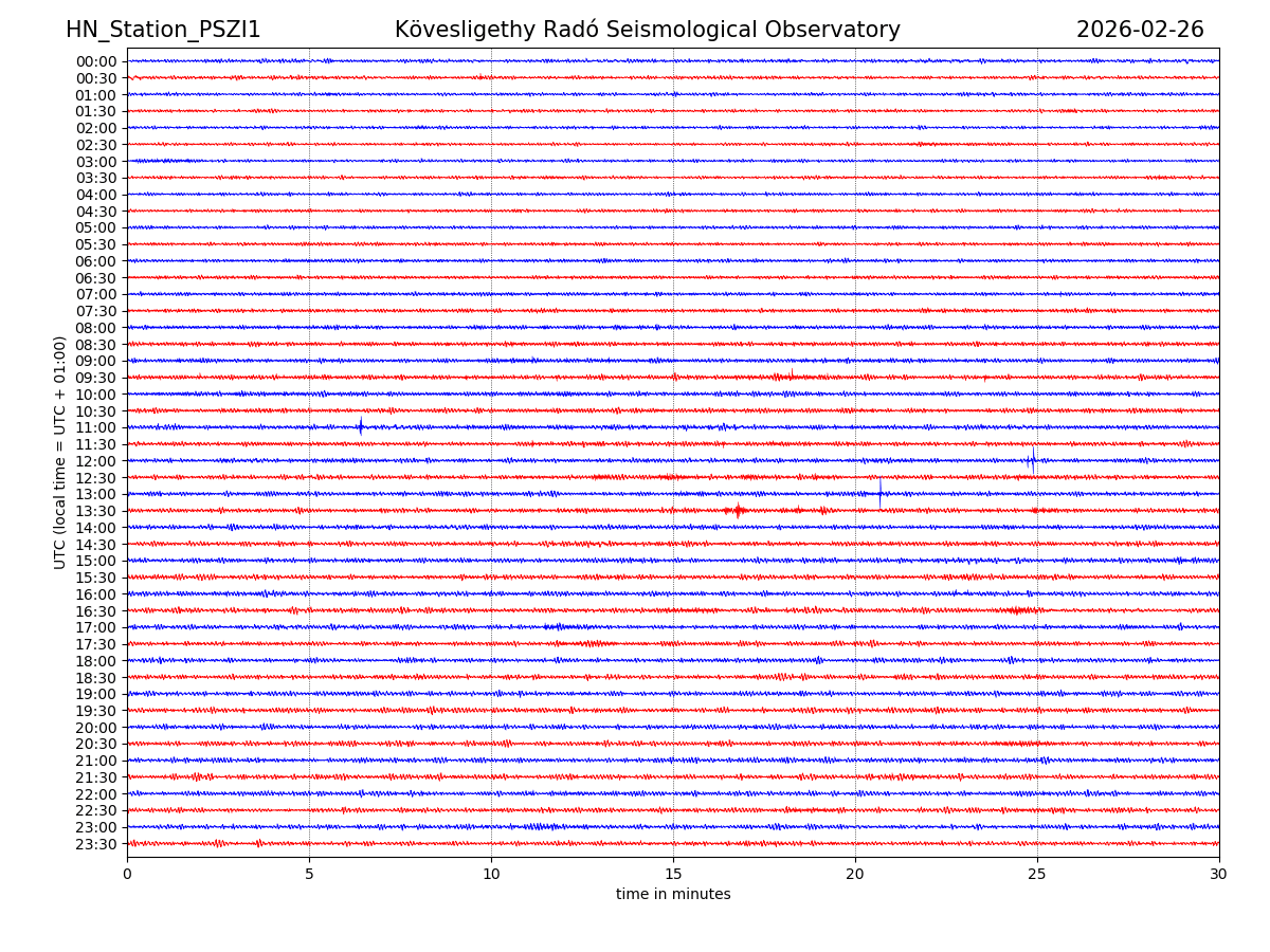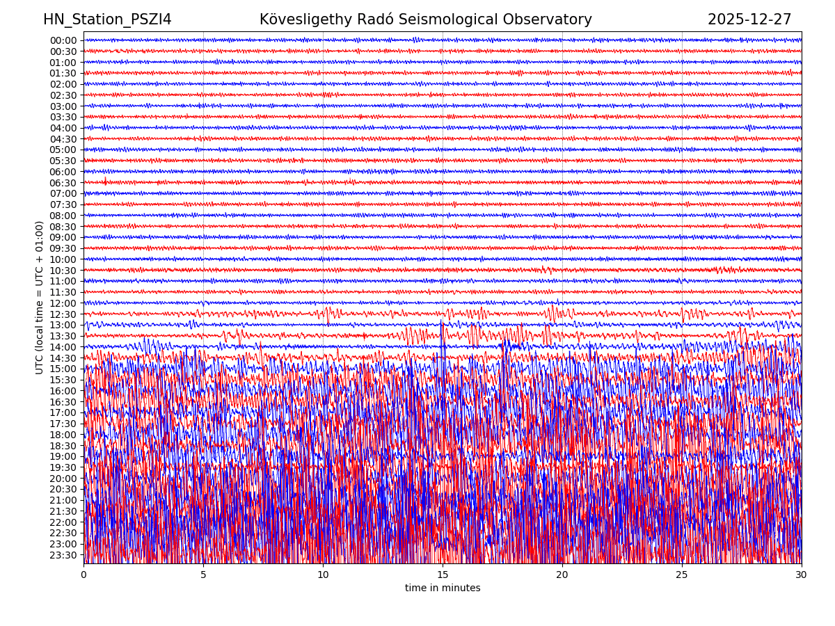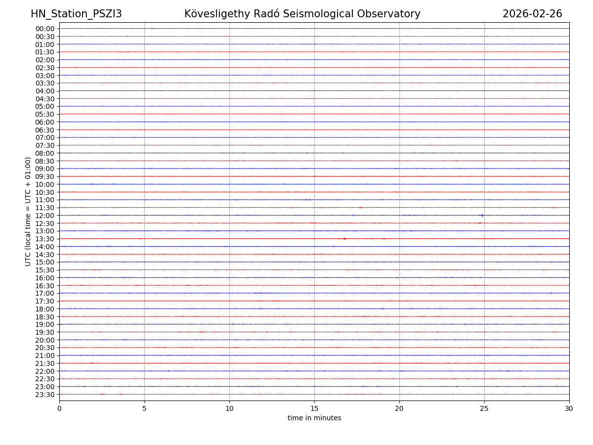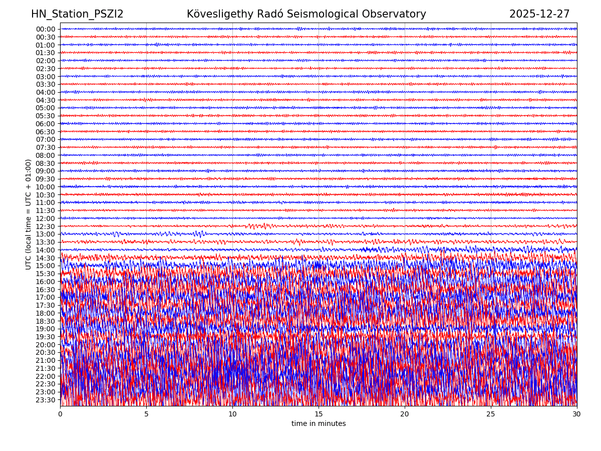 A kiválasztott képre kattintva megtekintheti a kérdéses magyarországi infrahang állomás által detektált élő regisztrátumot. Az előző tíz nap során rögzített infrahang regisztrátumok a képek alatt található linkeket követve jeleníthetők meg. (Az időskála világidőben [UTC] értendő, melyhez képest Magyarországon a helyi idő a téli időszámítás idején +1, nyári időszámítás esetén +2 óra.)